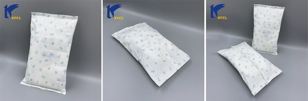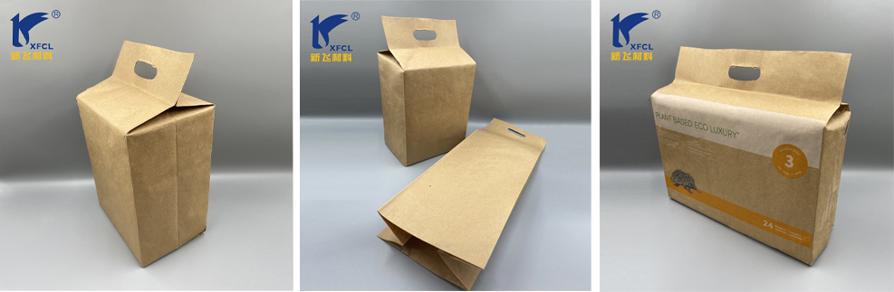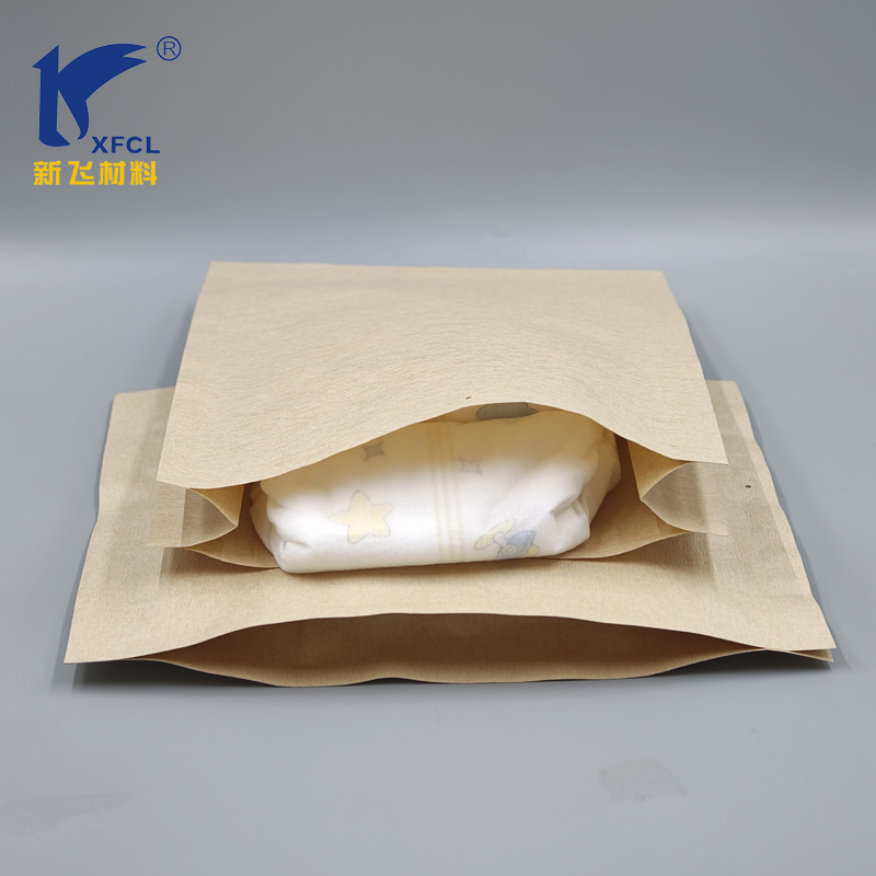 Эта биоразлагаемая бумажная упаковка без пластика сейчас широко используется в индустрии гигиены, например, для упаковки гигиенических салфеток, бумажных салфеток, подгузников, менструальных трусиков и так далее. Ниже представлен образец упаковки пробных упаковок подгузников.