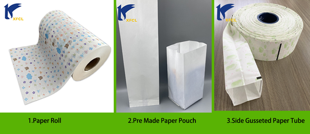 2. Стиль предложения: Для удовлетворения различных требований заказчиков к типам упаковочного оборудования, наша перерабатываемая биоразлагаемая бумажная упаковка может быть предложена в виде рулонов бумаги, готовых пакетов и картонных туб.
