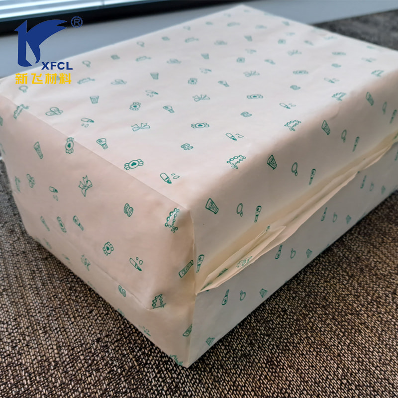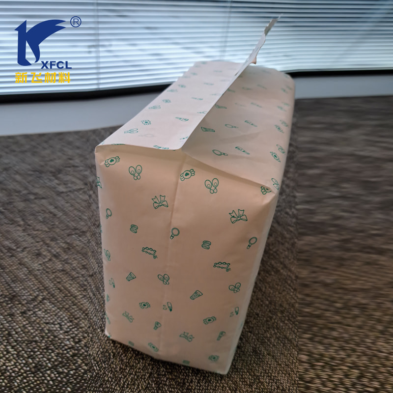 This new no plastic biodegradable recycling heat sealing paper is widely used in hygiene industry now, like the sanitary napkin paper packaging, tissue paper packaging, diaper packaging, menstrual pants paper package and so on. Below is the sample in diaper paper packaging.